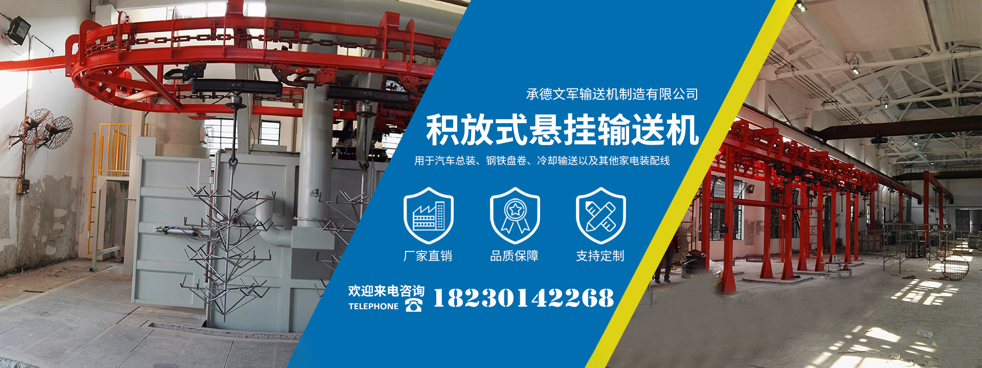 承德文軍輸送機制造有限公司位于承德縣孟家院鄉工業園,自2009年起公司專注生產制造各類工廠物流自動化設備,替代了進口產品,并成功進入了國外市場,再此基礎上公司的AS/RS自動化立體倉庫成功用于煙草、發動機、鑄造型芯、以及其他物流配送中心,公司的積放式懸掛輸送機廣泛用于汽車總裝、鋼鐵盤卷、冷卻輸送以及其他家電裝配線等。